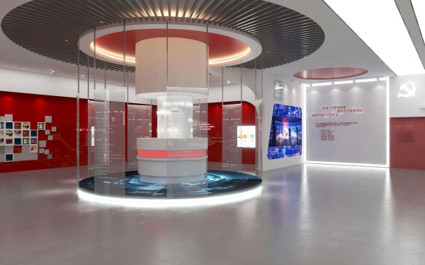 基地式陳設以核心基地展臺為視覺錨點,圍繞基地載體展開主題化內容延展與展示。該布局具備三大核心優勢:展示空間開闊、排布邏輯靈活、活動組織便捷,且可與其他展陳形式高效融合,空間兼容性極強。基地臺面多采用圓形、多邊形等幾何形態塑造視覺焦點,觀展動線可設計為多組時序線交叉形態,兼具直線型的規整感與曲線型的流暢感,適配主題聚焦、需靈活組合展項的展廳設計。